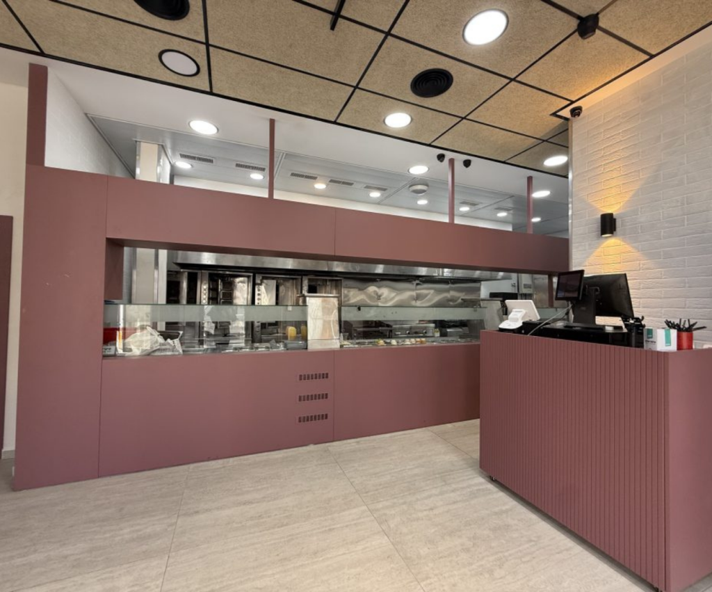 העבודה כללה שיפוץ קומפלט תוך עמידה בדרישות משרד הבריאות והתאמה מלאה לייעוד המסחרי של המקום – החל מחלוקה פונקציונלית של אזורי עבודה וישיבה, ועד פתרונות אחסון, אוורור ותחזוקה נוחים.