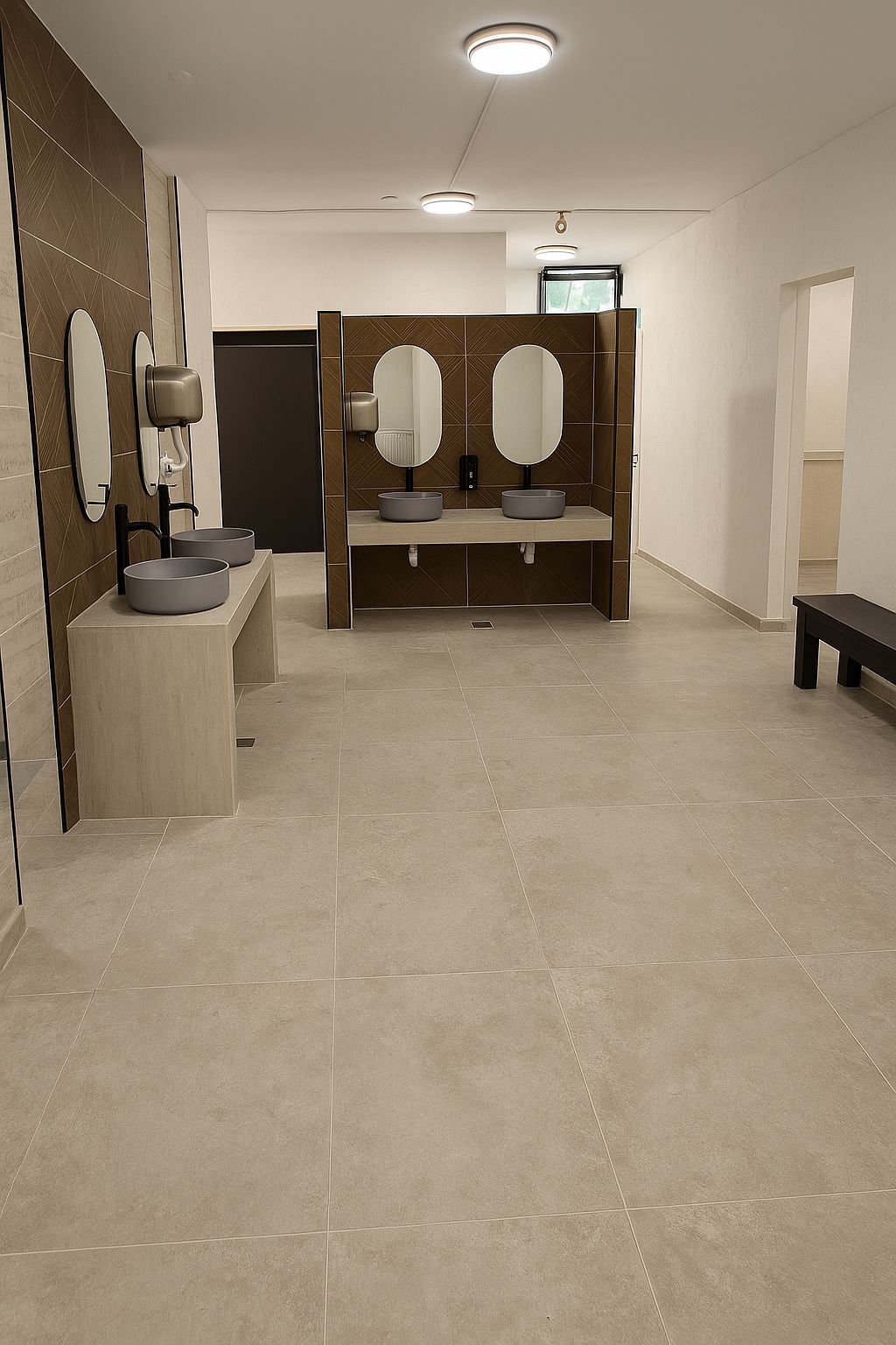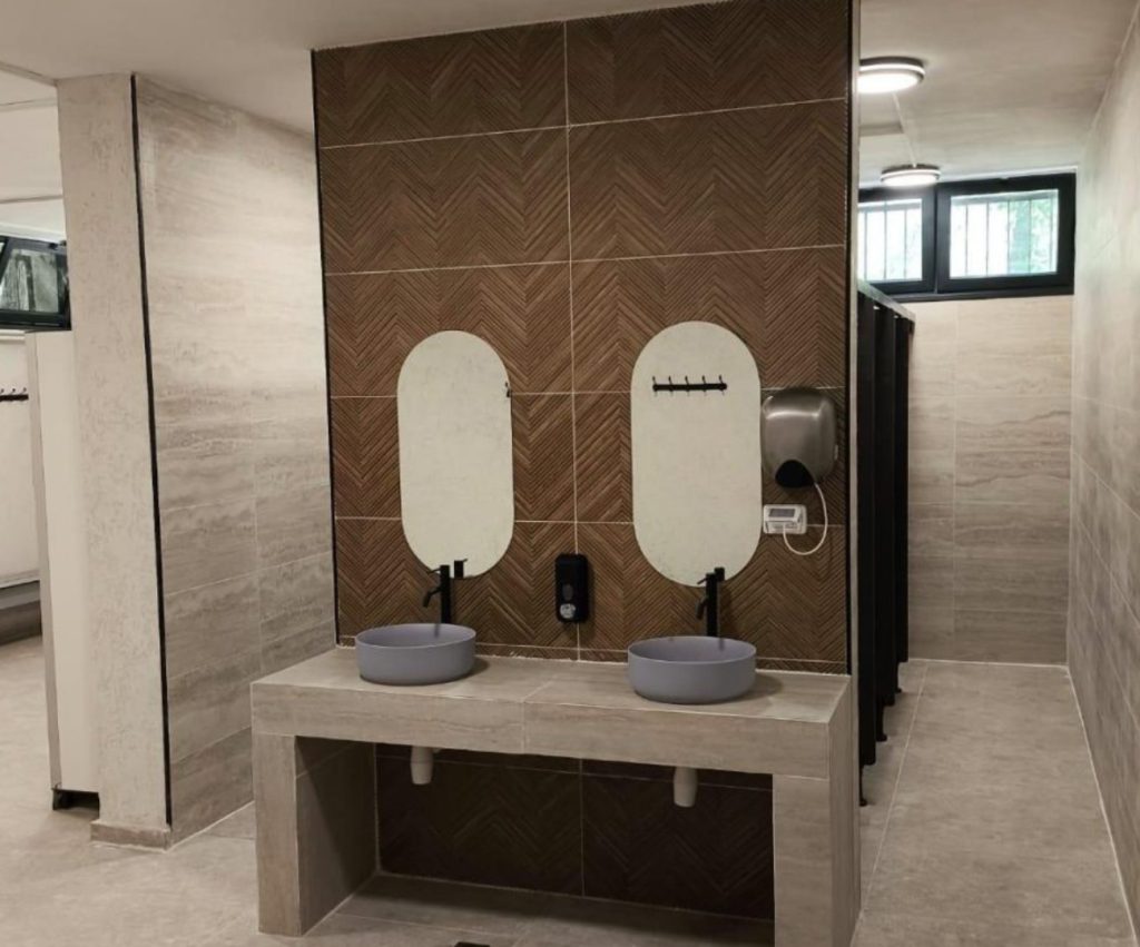 ההתערבות כללה בחירה מדויקת של חיפויי קרמיקה, ריצוף ואביזרים נלווים, תוך התחשבות במאפייני המבנה הציבורי, דרישות התחזוקה השוטפת, והתאמה לקהל היעד – ילדים, משפחות ומבקרים קבועים.