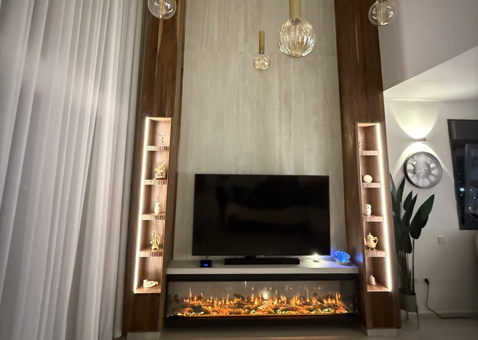 האתגר היה לייצר נוכחות עיצובית מובהקת מבלי "לשבור" את האיזון הכללי, אלא להכניס לתוכו מוקד דרמטי שמשתלב בהרמוניה עם יתר האלמנטים.